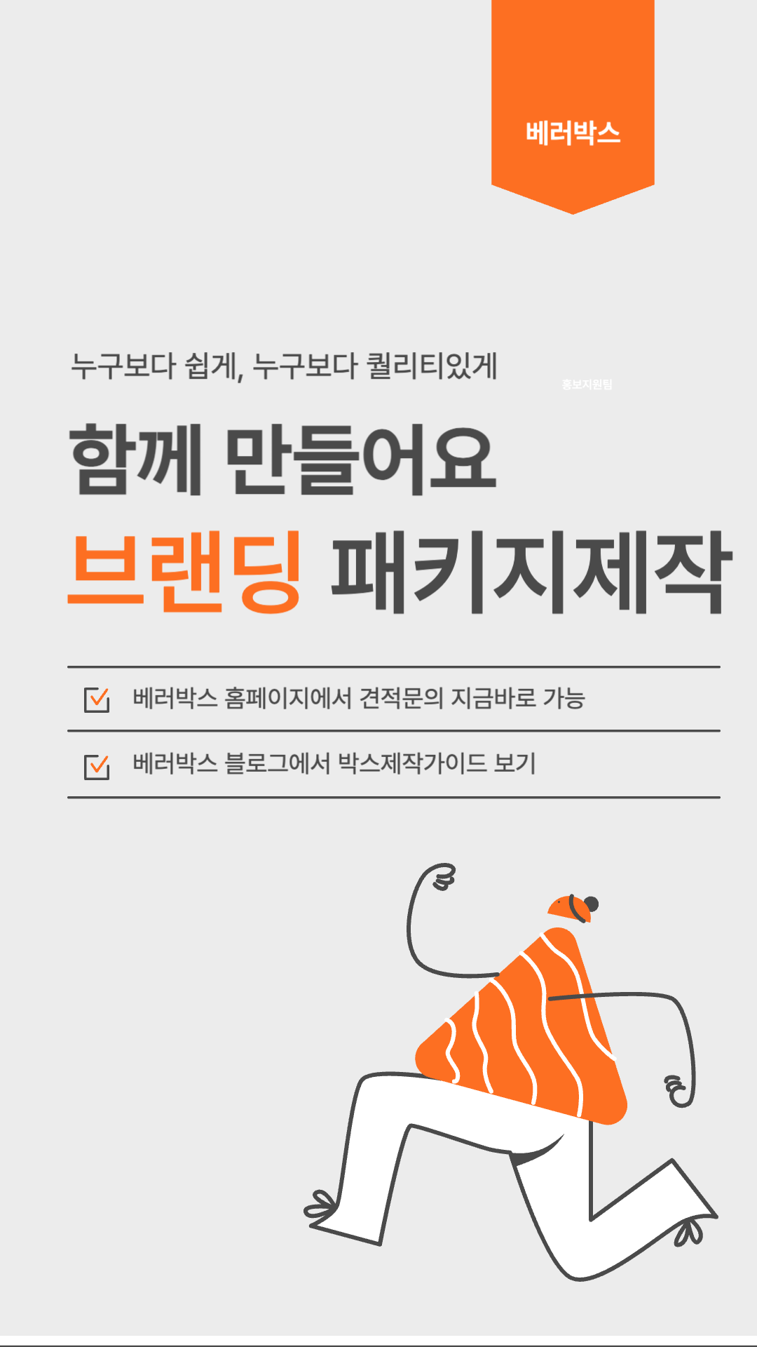 베러박스는 10년 경력의 패키지디자이너가 상주하고 있으며, 전문 패키지디자인회사와 협업하고 있습니다.